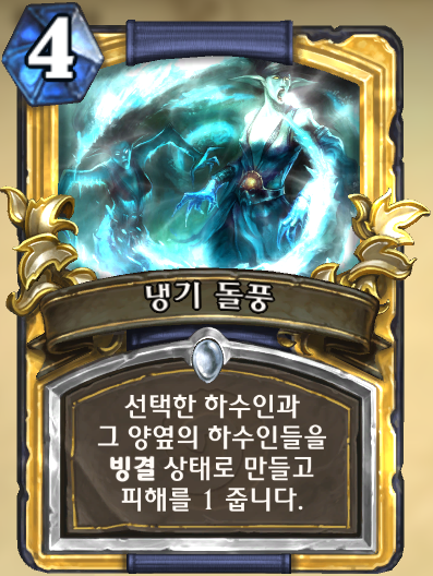 4코, 선택한 하수인과 그 양옆의 하수인들을 빙결 상태로 만들고 피해를 1 줍니다.