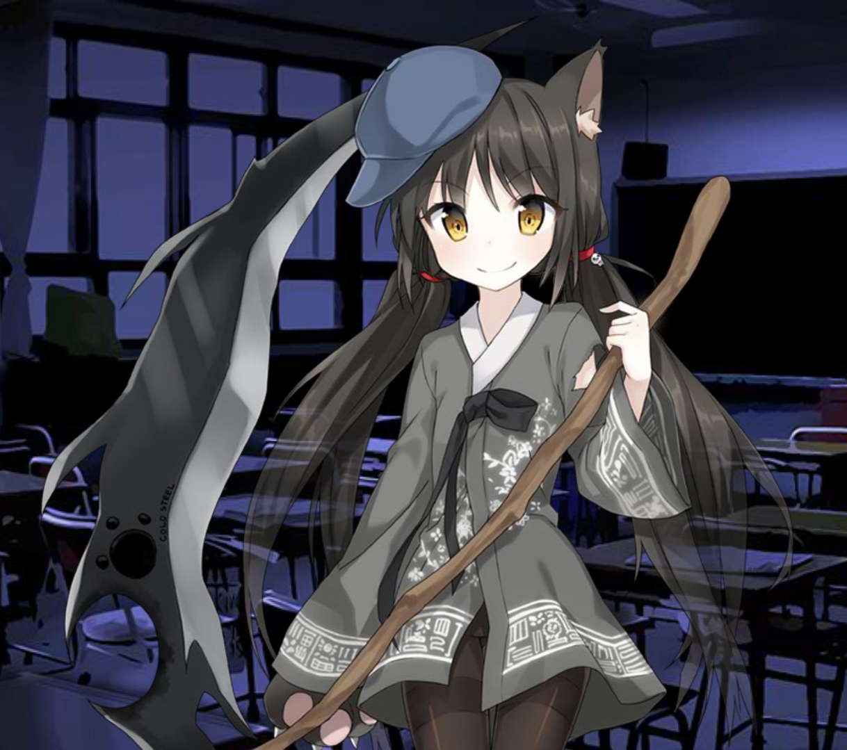 사신. 주인공의 목숨을 거두러 온 듯하다. 근데 낫든 거 말고는 상의는 한복에 밑엔 팬티스타킹만 입고 있는 등 사신이랑은 전혀 접점이 없어보이는 꼴릿한 생김새를 하고 있다. 로리년 주제에 씹머꼴이다. 우주제일갓캐이며 존나 귀엽다 존나 예쁘다 아이시뗴루요 고냥쟝!!!!!!!!!!!!!!!! 내가 죽기 직전에 꼭 미제메이커로 내 모가지 따줘!!!!!!!!!!!11