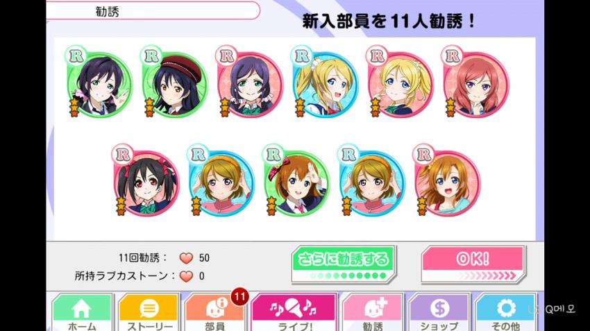 11회 연속 부원 모집시 SR확정 기간에 1SR만 나온 경우도 도부.