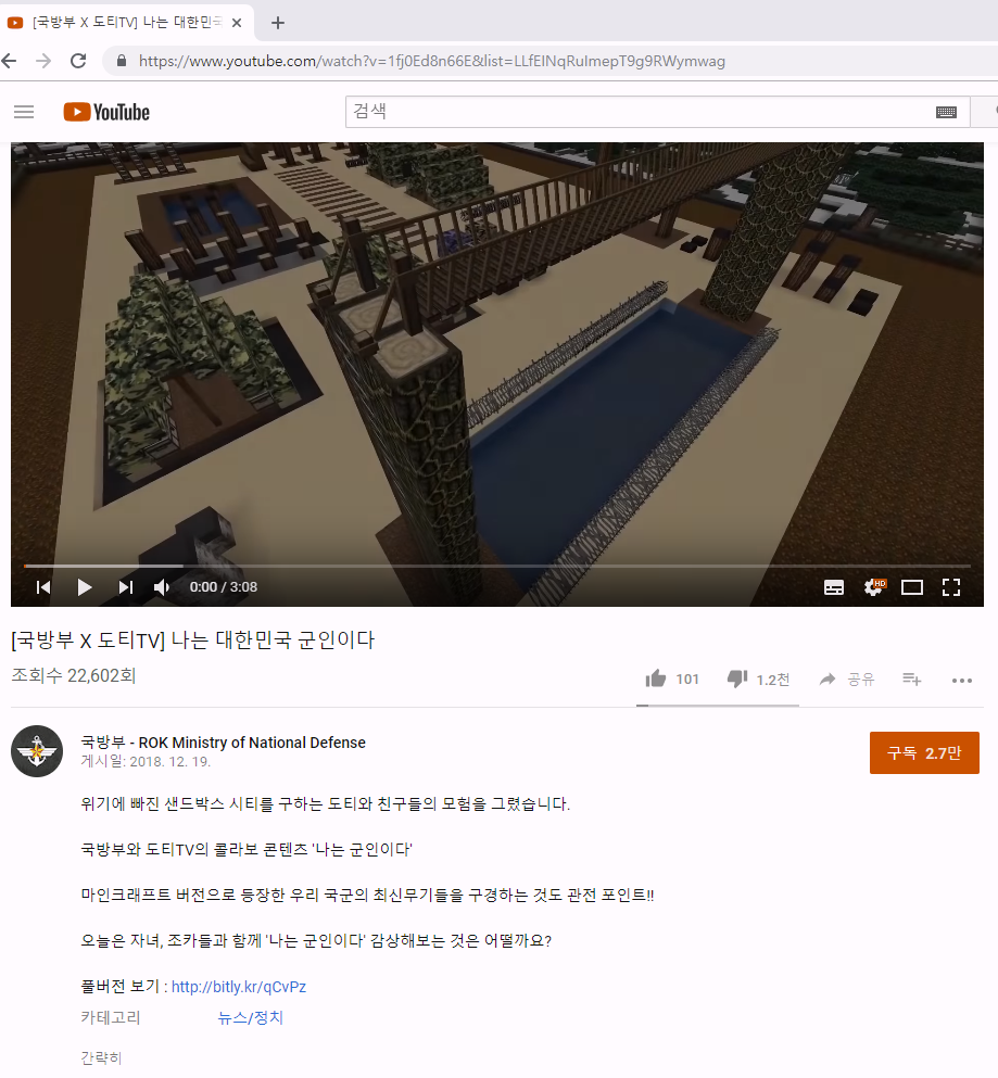 이번에 유튜브 인기동영상보면 마크영상도 있던데 그게 다 모래로동당 꺼임. 무슨 공작활동인가