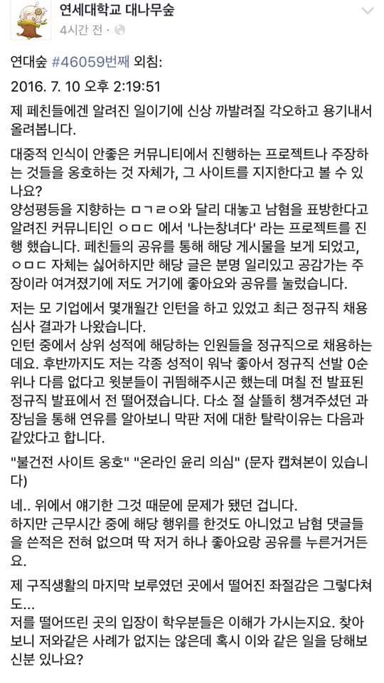 - 2.소라넷은 존나 게으름피우다가 여자들이 공.론.화 하자 그제서야 수사해놓고 워마드에겐 왜이렇게 가혹한거? 이건 여성혐오이자 편파수사盧 이기.
