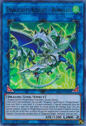 토큰 이외의 드래곤족 / 비행야수족 몬스터 2장 이 카드의 ①②의 효과는 각각 1턴에 1번밖에 사용할 수 없다. ①: 이 카드가 링크 소환에 성공했을 경우에 발동할 수 있다. 덱에서 "드래그니티" 마법 / 함정 카드 또는 "용의 계곡" 1장을 패에 넣는다. ②: 드래곤족 몬스터가 엑스트라 덱에서 이 카드의 링크 앞에 특수 소환되었을 경우에 발동할 수 있다. 패에서 드래곤족 또는 비행야수족 몬스터 1장을 수비 표시로 특수 소환한다. 이 효과로 특수 소환한 몬스터의 효과는 무효화되고, 링크 소재로 할 수 없다.