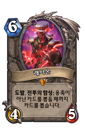 6코 4/5 도발 전투의 함성: 카드를 1장 뽑습니다, 뽑은 카드가 용족이면 1장 더 뽑습니다