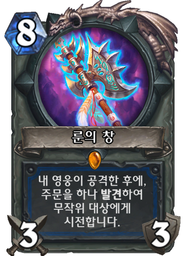 이 직업은 “좋은”, 진짜로 상대방을 죽음 근처로 데려가는 데 도움이라도 줄 만한 카드들이 필요합니다. 랜덤으로 주문을 발견하고 사용하는 8코스트 무기가 “좋은” 카드가 될 수 있을까요?