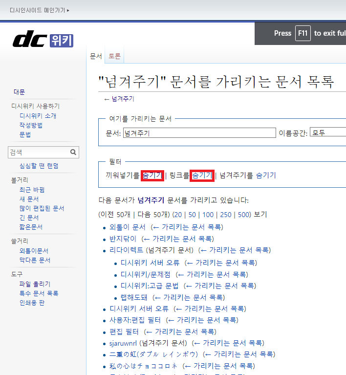 꼭 위키 기본문법도 모르는 병신들이 ~~문서로 가세요' 라고 수동으로 해놓는다.