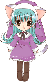 파란색머리에 트라이앵글 2개나 달고다니며 사근사근한 말투로 말한다.