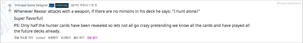 신작겜을 만드는데 동원되어서 하스스톤 부서에서 빠졌다고 한다.