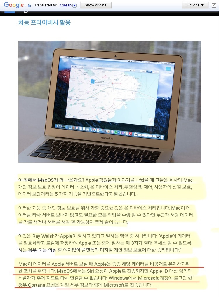 게임과 프로그래밍, 개발과는 거리가 멀고, 그저 학교 다니면서 쓸 목적(과제, 인터넷 등)으로 산 일반인의 관점에서 보자면 디자인 이쁘고, UI 직관적이고, 애플 기기간의 연동성 좋은거 말고는 딱히 윈도우보다 좋은 점은 별로 없는 것 같다.