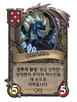 5/5(10/10) 용족, 전투의 함성: 방금 전투한 상대편의 무작위 하수인을 내 손으로 가져옵니다. (황금 하수인으로!)