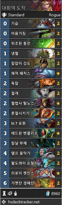 또 비슷한 케이스인 왕파도적은 퀘스트도적의 빠르고 무자비한 승리 플랜에 압도되었습니다. 컨트롤 덱을 카운터치고 싶을 때, 퀘스트도적을 두고 이 둘을 선택할 이유는 없어 보입니다.