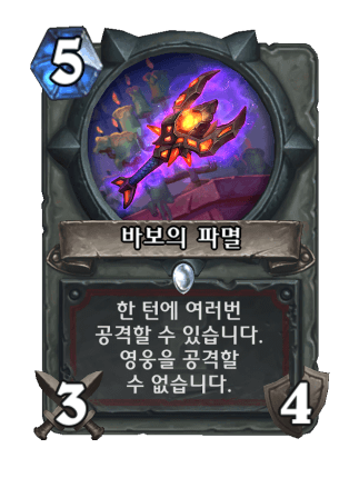 5코 3/4에 한 턴에 여러대를 때릴 수 있으나 영웅을 공격하지 못하는 엄청난 패널티 덕분에 아무도 안썼다.