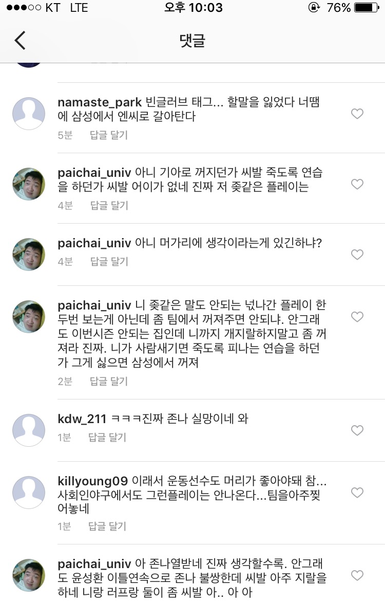 삼성라이온즈 강한울을 싫어한다
