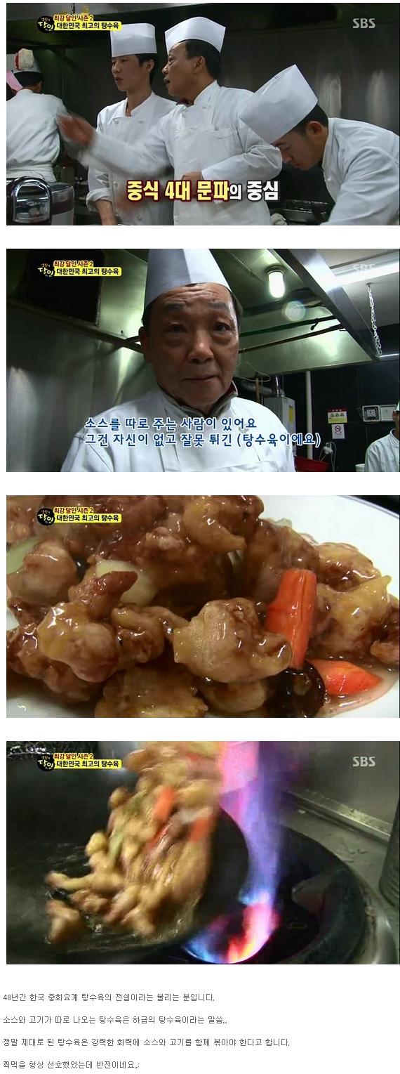 위에 소리는 중알못이 한소리이고 실제 꿔바로우의 레시피는 살짝 볶아먹는게 원조가 맞다.중국위키중국방송한국 요리사의 레시피 그리고 누룽지탕은 애초에 탕수육이랑 상관이 없는 음식이다.