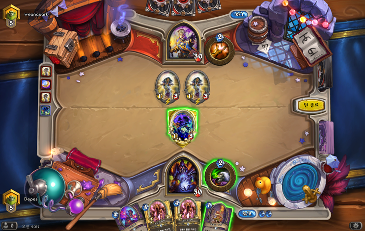 좆두인 기본카드로 1코 1/3에 하수인이 회복될때마다 카드를 뽑아준다.