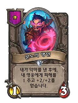 1/3 (2/6), 내가 악마를 낸 후에, 내 영웅에게 피해를 1 주고 +2/+2 (+4/+4)를 얻습니다.