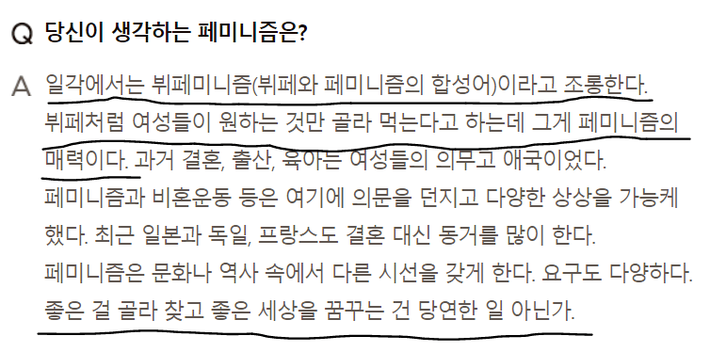 여자가 원하는 것만 하는게 페미 매력이라고 한다.[1] |