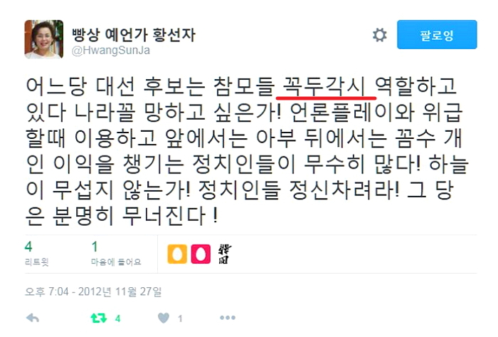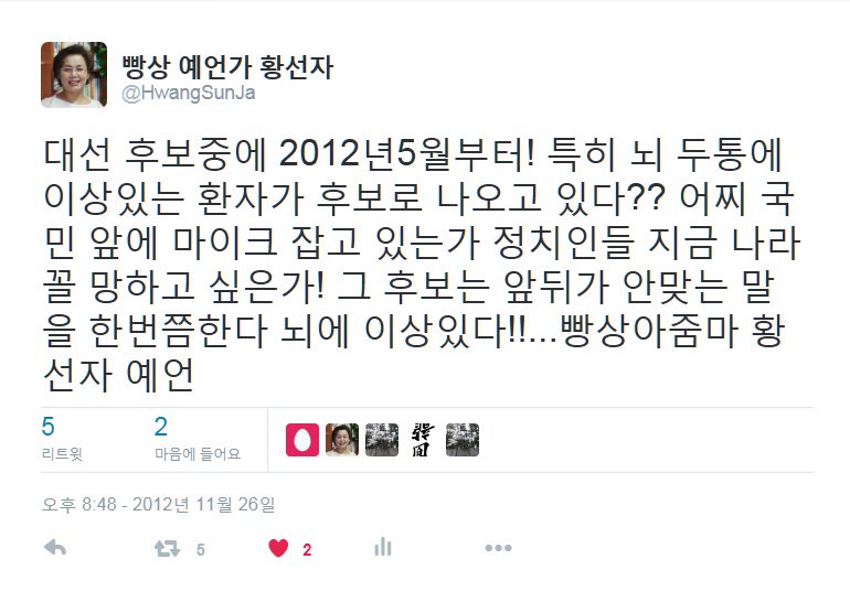 놀랍게도 순살치킨의 등장으로 예언이 맞아떨어졌다. 머리에 문제가 있다는 것도.. 심지어 새누리당 몰락도 예언하셨다!