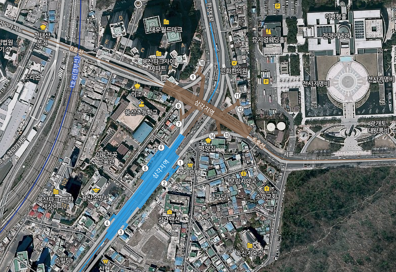 용산 하면 생각나는 전자상가도 다 그짝지역이지 삼각지 상권은 아니다.