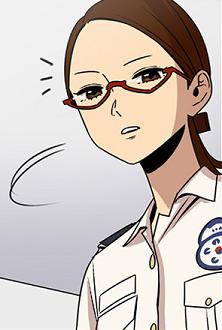 단정하게 묶은 머리에 빨간색 반 무테안경, 경찰제복이 잘 어울리고 신병을 가르치는 모습까지 조화되어 다소 깐깐하지만 좋은 선생님같은 느낌.