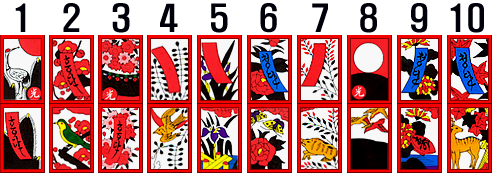 섯다에서 사용하는 1월에서 10월까지의 패