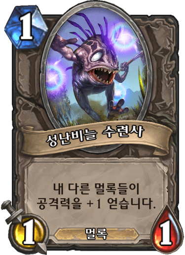 오리지널 공용 기본 카드, 1코 1/1 멀록, 내 다른 멀록들이 공격력을 +1 얻습니다.