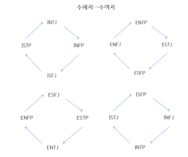 3. INxP - ESxJ, ISxJ - ENxP 간의 관계는 연인 관계에선 성숙도에 따라