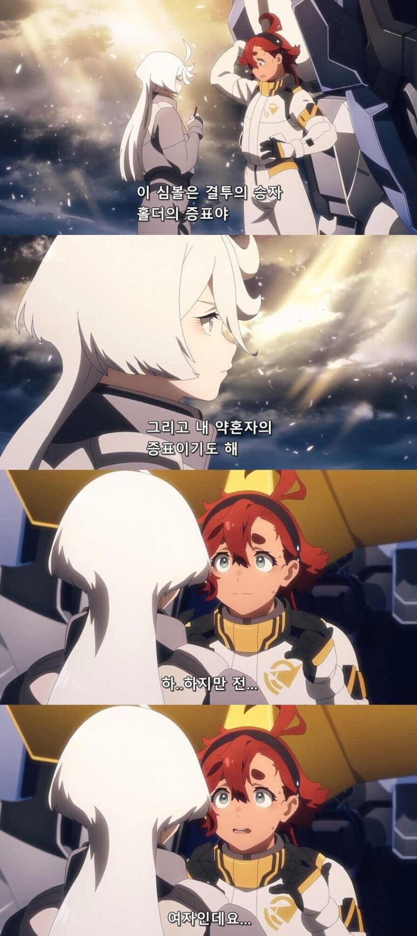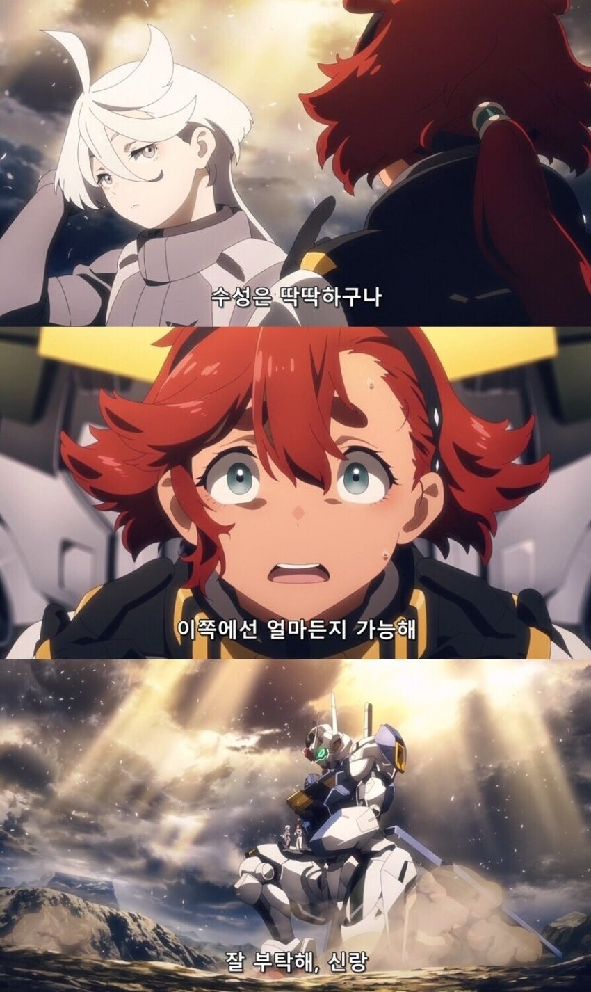 애초에 그 철혈도 1화는 갓갓이었기 때문에 1화 자체는 꽤 괜찮게 평가하며 보고 있었는데 1화 막판에서 건담 최초로 공인된 백합 장르를 찍고야 말았다.