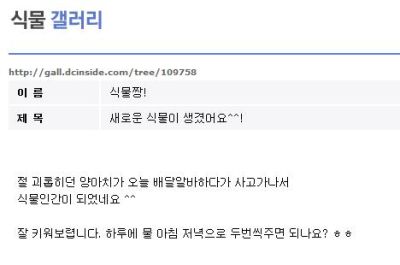 - 식물을 길렀는데 이거 잡초 아니냐고한 글에 달린 댓글. 이 글은 초등학교 도덕 교과서에도 실렸다고 합니다.
