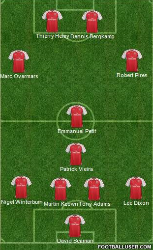 MF:패트릭 비에이라(DM)/엠마뉘엘 프티(CM/DM)/로버트 피레스(RM)/마크 오베르마스(LM)