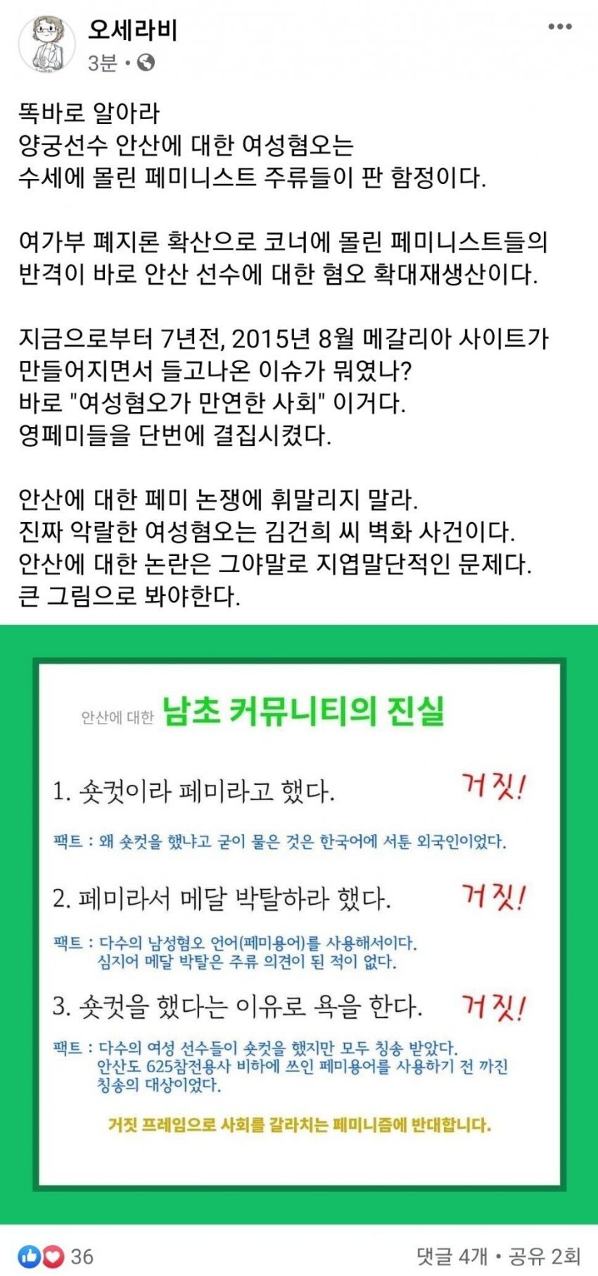 위의 이유 때문에 안산 선수의 페미 논란을 키웠다.