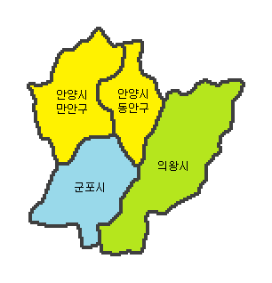 첫번째 짤은 현재 3분할 된 안양, 군포, 의왕지역이고 두번째 짤은 통합되었을 때 예상되는 행정구역이다. 세번째 짤은 지역구분없이 하나가된 통합 안양시를 의미한다.