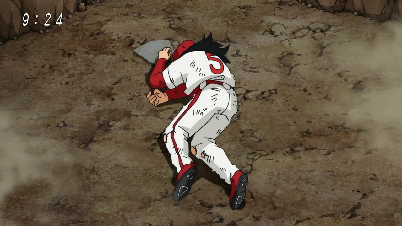 일상편에서도 고통받는다. 그나마 차이점은 베지터편때는 진짜로 사망했지만 이 야구편 만큼은 생존했다.