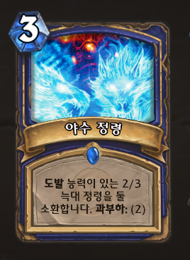 오리지널 술사 히기주문 3코, 도발 능력을 가진 2/3 늑대 정령을 둘 소환합니다. 과부하: (2)