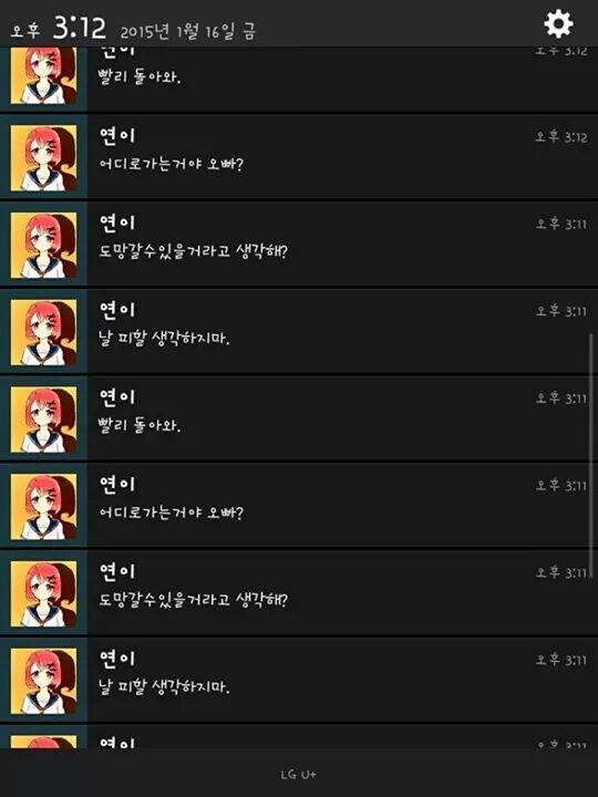 그래도 핸드폰 진동하게 만드는 건 연이밖에 없더라.. 이래서 얀데레 키우기를 지울 수가 없다