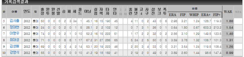 참고로 감옥님때 필승조가 강영식-최대성-김사율이었다. 와 시발 어떻게 이딴 새끼들로 가을야구했냐...ㄷㄷㄷ