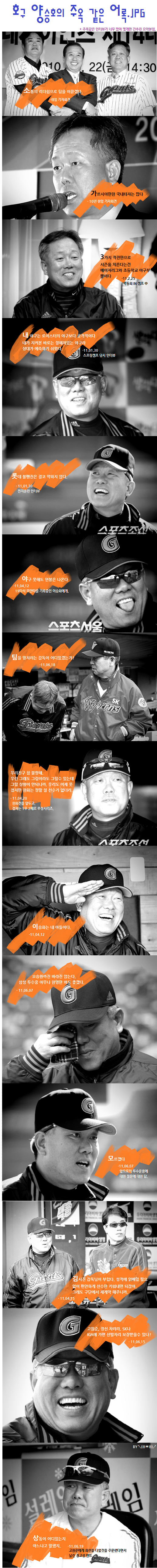 ★ 우리는 타격은 좋은 팀이니, 투수들이 잘해주면 승차를 좁힐 수 있다. 하지만 현재 승차를 좁힐 수 있는 힘이 없다. - 2011년 6월 15일. => 결국 그 투수진을 키워서 2위를 하셨다.