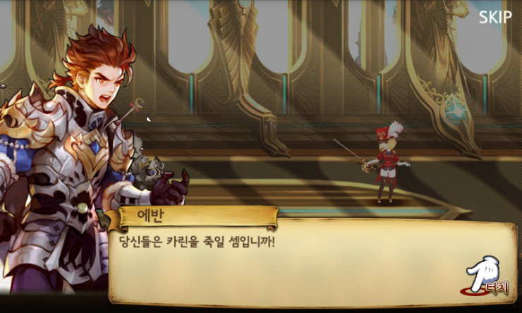 세븐나이츠의 주인공으로 카린이라는 좆집을 거느리고 다닌다. 원래는 루디의 꼬봉이였지만 자기 좆집 죽이려는 세나들에게 분노하여 하얀 이리 에반으로 각성하고 카린을 보호하려고 한다. 각성하고 나서 잘생겨졌다.