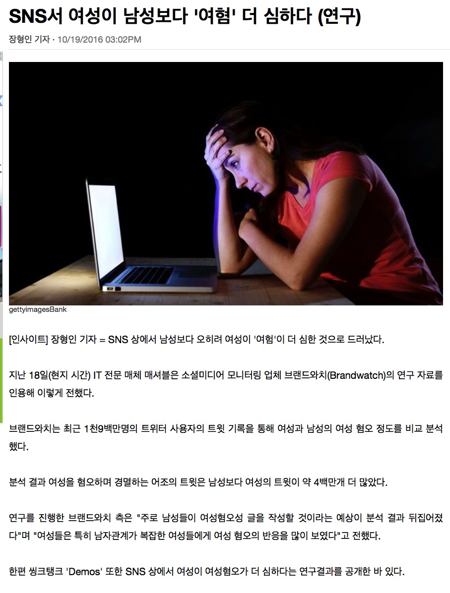 경향에서 "남혐이 아니라 님혐"이라는 병신같은 명언을 남긴 기사가 있는데