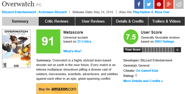 블리자드가 2016년 5월 24일 출시한 FPS 게임. PS4와 XBOX ONE 콘솔로도 출시했지만 한글화가 안되어 있다. 안그래도 콘솔쪽에도 옵치같은 완전한글화 타이틀 수 적은데 콘솔판도 한글화 해주지 블코놈들아 ㅠㅠ