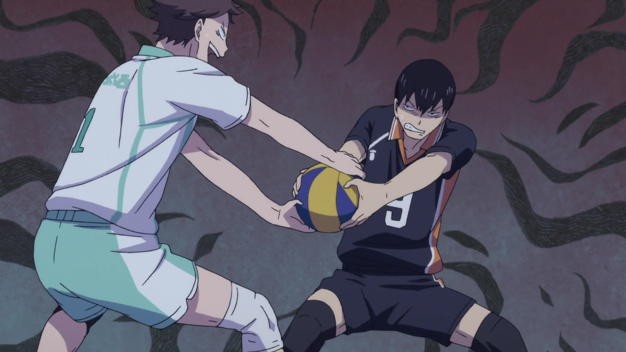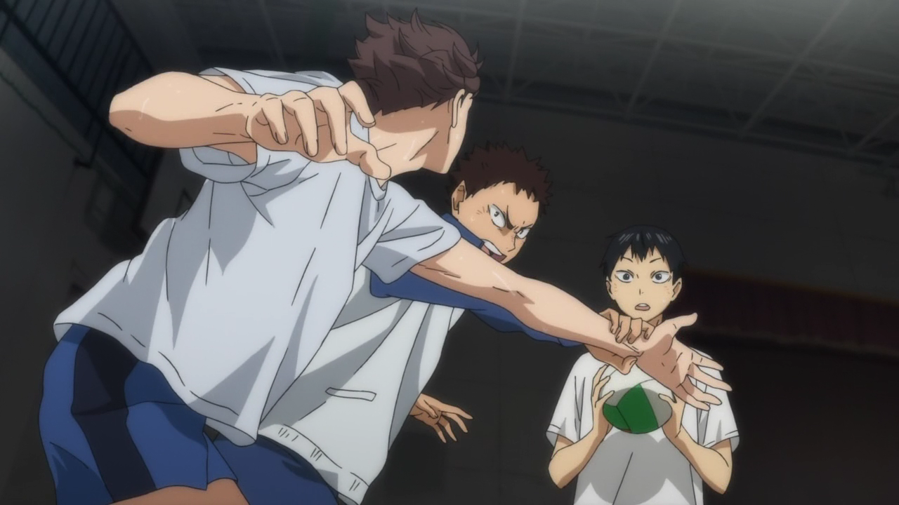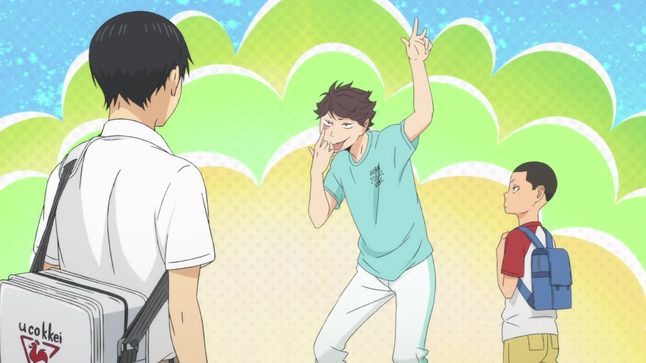 봄고 대회를 앞둔 상황에서 오이카와 쪽으로 굴러들어온 배구공을 카게야마가 가지고 가지 못하도록 잡아 씨름하다가 갑자기 놓아서 카게야마를 넘어뜨렸다.