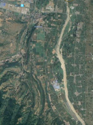 제갈량이 최후를 맞이한 곳. 현재 중공기준으로 섬서성 보계시 기산현 오장원진 남쪽에 있다. 사진에서 배모양으로 둘러싸인 구릉지대가 오장원이다.