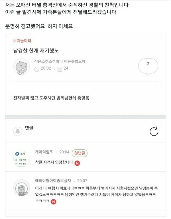 범행동물 검거 과정에서 도움을 준 용감한 시민이 있었다. 그런데 그 시민은 잠시뒤 경찰관 폭행으로 입건되었다. 아재, 당신은 대체 무엇을 위해... [1]