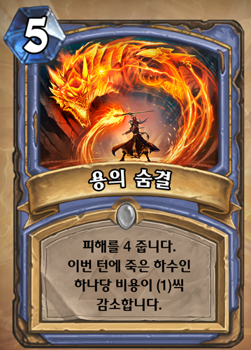 5코, 피해를 4 줍니다, 이번 턴에 죽은 하수인 하나당 비용이 (1)씩 감소합니다.
