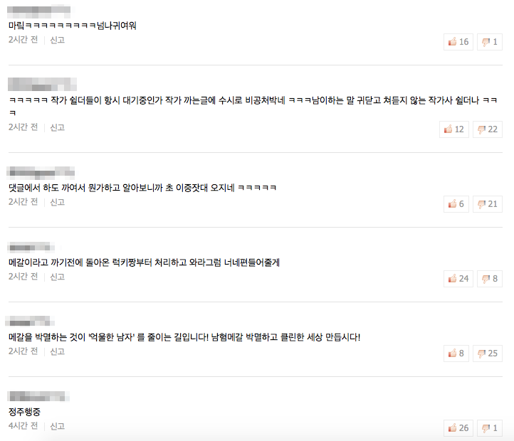 ㄴ저기서 키배 해봤는데 팩트글에만 비공 존나달리더라 메갈 초작가 쉴드러 수준 퍄퍄