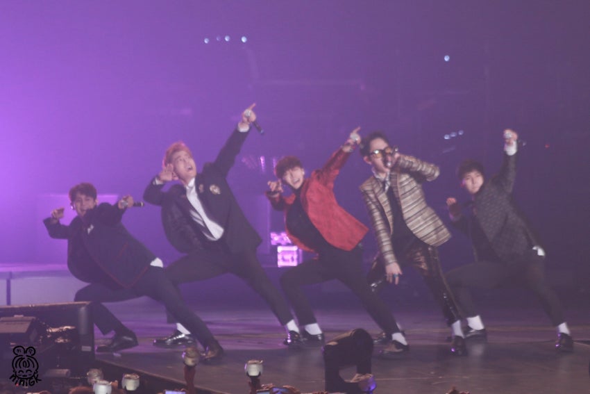 순서대로 윤두준, 용준형, 양요섭, 이기광, 손동운. 현재 용준형은 버닝썬 게이트에 연루되어 자진 탈퇴했다.