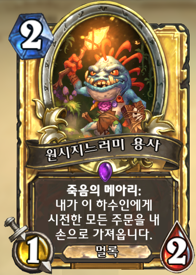 | 와아우! 황금 희귀카아드! 이 문서에서는 블리자드의 두 번째 밥줄인 돌망겜에 대해 다루고 있습니다. 패치 때마다 어-썸한 사기카드들을 잔뜩 만들어내다가 결국 명을 달리 하고 말았던 벤 브로드에게 감탄과 경의를 표하십시오. |