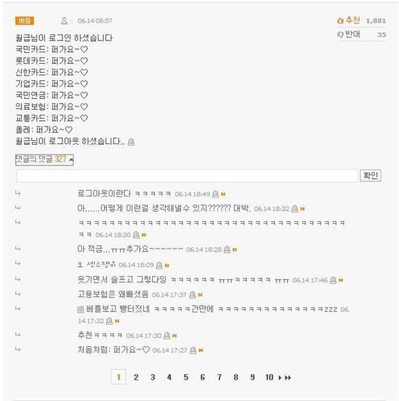 디시인들 한달 평균 월급은 세전 100만원이다.