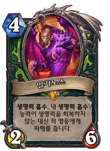 4코 2/6 생명력 흡수, 내 생명력 흡수 능력이 생명력을 회복하지 않는 대신 적 영웅에게 피해를 줍니다.