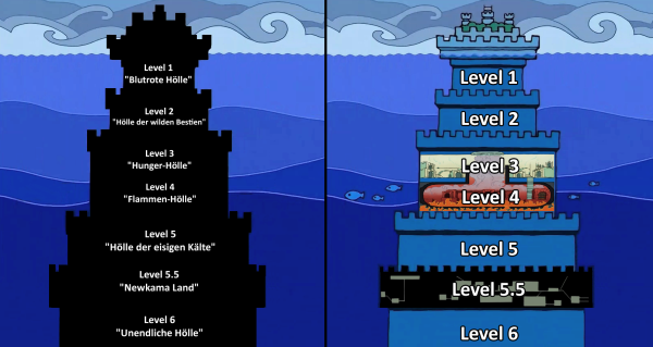 편집사실상 개꿀 감옥. 레벨1~레벨5까지는 죄수들한테 고문을 줬지만 여기선 고문을 주다가 역관광 당할까봐 그런지 그냥 감옥안에 가둬놨다. 강한 열매 능력을 가진 수감자들은 만약 사망하게 되면 또 어딘가서 그 열매가 열리게 되고 괜히 죽여서 좆되는 꼴이 되니 가끔 옥졸수들이 몽둥이 찜질을 해주고 가는 정도의 벌을 준다. 그래도 전쟁 보이콧으로 인해 입갤했던 징베나 에좆스가 쳐맞고 몸 만신창이 되거나 뒤진거 보면 마냥 개꿀 감옥은 아니다. 존나존나 쌘 인간흉기들만이 갈 수 있는 감옥. 헬조선의 실태를 만화로 보여주고 있다. 여기 갇힌새끼들은 하나같이 다 거물급이다. 탈옥은 절때 불가능하다고 했었는데 애미뒤진 루피새끼가 범죄자들을 다 탈옥시켜줘서 세상은 더욱 혼란스러워진다.