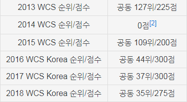 무려 2013년부터 WCS 300점을 넘긴적도 없다^^